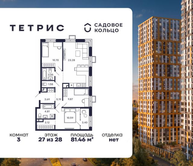 Трехкомнатная квартира евроформата с просторной кухней-гостиной и двумя санузлами в жилом комплексе бизнес-класса "Сити квартал Отрада". Планировка квартиры выполнена по современным стандартам и отличается повышенным комфортом. Квартал состоит из трех 31-этажных башен, вырастающих из единого основания, на вершине которого разместился приватный двор с доступом только для резидентов. На 31 этаже каждой из башен располагаются уникальные пентхаусы. Благоустройство закрытого двора включает в себя прогулочные дорожки, уютные зоны отдыха, разнообразные детские и спортивные площадки, а также собственную инфраструктуру на первых этажах дома - магазины, кафе, рестораны и фитнес-клуб. Проектом предусмотрен многоуровневый подземный паркинг с кладовыми помещениями. Идеальное расположение комплекса в сердце города сочетает в себе все преимущества комфортной жизни с прямым доступом к инфраструктурным, транспортным и культурным объектам. Надежный застройщик ГК "Отрада" с высочайшим рейтингом 5 звезд от портала ЕРЗ. Все корпуса во всех ЖК сданы раньше срока! Продается 3-комнатная квартира в новостройке в Красногорске.