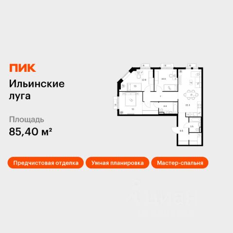 Продаётся 3-комн. квартира площадью 69,2 кв.м на 2 этаже 9 этажного дома (Корпус 4.3, Секция 4) проекта ПИК Ильинские луга. Светлый просторный подъезд на уровне земли, функциональная планировка, большие окна, предчистовая отделка. Жилой район "Ильинские луга" находится в 10 километрах от МКАД по Новорижскому шоссе, в 20 минутах на автомобиле от станций метро "Волоколамская", "Тушинская" и "Строгино". В будущем ближе к проекту, в 9 минутах пути на машине, откроется станция "Ильинская" Рублёво-Архангельской линии, которая будет соединять Арбатско-Покровскую линию и Большую кольцевую линию. Сейчас в квартале начались продажи в корпусах 3.2, 3.3, 3.4, 3.5 и 3.6. "Ильинские луга" — масштабный проект, в который входит девять детских садов, четыре школы и поликлиника. Он строится в престижном и экологичном районе среди лесов и памятников природы. За 5 минут от жилого квартала можно доехать до Рублёво-Успенского шоссе, а за 30 минут — до центра Москвы. До крупного торгового центра "РИГАМОЛЛ" всего 5 минут на автомобиле, а до ТЦ "Твой дом" и гипермаркета "Глобус" — 10 минут. В "Ильинских лугах" строятся только девятиэтажные дома — такая архитектура соответствует спокойной жизни за городом. В каждом дворе-парке есть места для отдыха, детские и спортивные площадки. А ещё, здесь уже открыт большой PlayHub "Гравити" — современное игровое пространство с космической тематикой, холмами, зонами для игр и отдыха жителей любого возраста. На первых этажах уже работают магазины, кафе и пекарни. Места для отдыха от "Ильинских лугов" тоже недалеко: 10 минут на машине — и вы в музее-усадьбе "Архангельское". Также рядом находится Лохин остров — памятник природы, где водятся речные черепахи, есть места для кемпинга и возможность сплавиться по реке. Артикул 1012094 (Застройщик ООО "СЗ "ГРАДОЛИМП") 3-комнатная квартира первичка в поселке Ильинское-Усово Московской области.