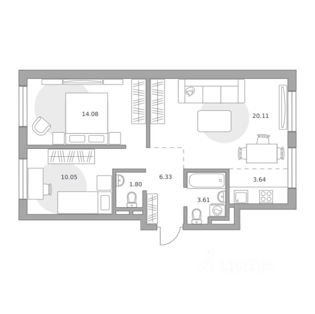 Продаётся 3-комнатная квартира 211, площадью 54,21 м², на 5 этаже в ЖК "Аникеевский" корпус 7. Стоимость — от 10263511 руб. Квартира без отделки, планировка односторонняя, окна на улицу.