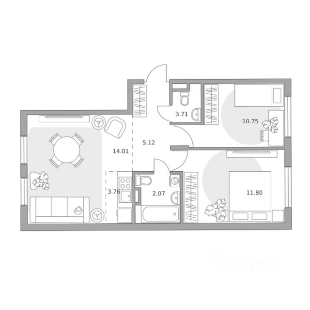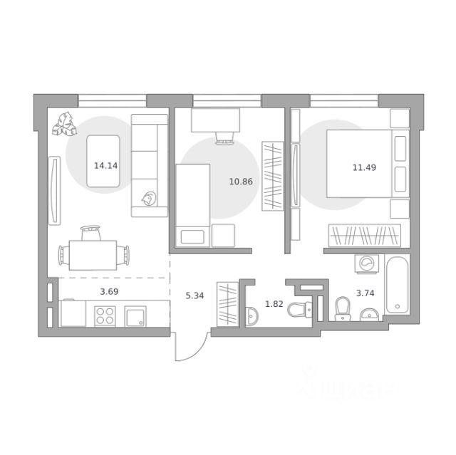 Продаётся 3-комнатная квартира 14, площадью 53,34 м², на 2 этаже в ЖК "Аникеевский" корпус 1.2. Стоимость — от 11908709 руб. Квартира с отделкой, планировка односторонняя, окна на улицу.