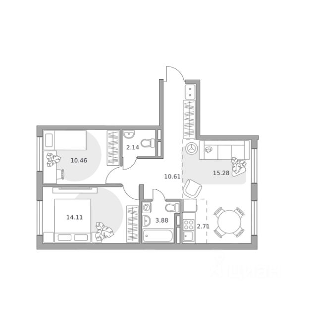 Продаётся 3-комнатная квартира 389, площадью 52,34 м², на 11 этаже в ЖК "Аникеевский" корпус 1.1. Стоимость — от 10141116 руб. Квартира без отделки, планировка угловая, окна во двор.
