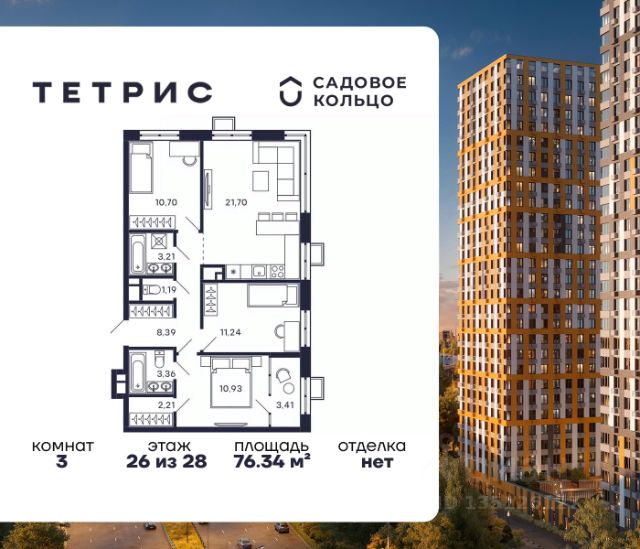 Продается квартира в ЖК Тетрис с 3 спальнями на 16 этаже 28 этажного дома. Общая площадь: 76.55 кв.м. Высота потолков 2.95 м. Срок сдачи 2 квартал 2026 г. Эскроу-счет. Застройщик ГК "Садовое кольцо". Семейный жилой комплекс "Тетрис" с собственной развитой инфраструктурой, благоустроенным двором и функциональными планировочными решениями. Собственный двор-парк, детские и спортивные площадки. Продуманные зоны отдыха с ландшафтным дизайном. Охраняемая дворовая территория и круглосуточное видеонаблюдение. Рядом удобная транспортная развязка и станция МЦД Павшино. ЖК "Тетрис" объединяет все важнейшие факторы, формирующие комфорт: Просторный обустроенный двор — место, где весело проводить время с друзьями и семьей. Свой торговый центр, чтобы любая мелочь была под рукой. Удобная локация и транспортная доступность. Свои медицинский центр и школа с блоком начальных классов. Жилой комплекс "Тетрис" обеспечит вам идеальное пространство для жизни, где все необходимое под рукой. Благодаря этому вы получаете самый драгоценный ресурс - время на общение с друзьями и семьей, заботу о себе и личное развитие. Продам 3-комнатную квартиру в ЖК Тетрис в Красногорске.