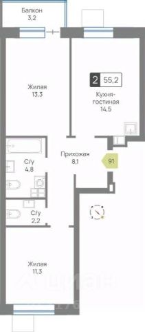 • лоджия 2,15 кв. м., тоже с высоким потолком. По бокам лоджии можно организовать места для хранения вещей. На фото кажется узкой, на самом деле лоджия просторная;