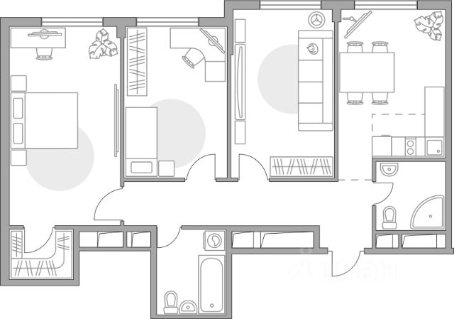 Просторная гостиная с панорамными окнами 53 кв.м., кухня 13 кв.м.