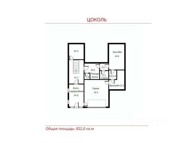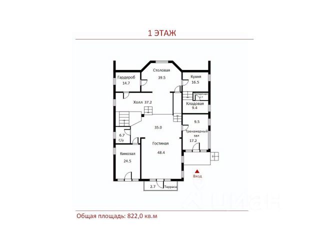 1 этаж: холл, кухня, столовая, гостевая спальня с с/у, кабинет, гостевой с/у, переход в каминный зал