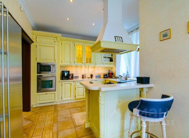 Высококачественная отделка, эксклюзивное цветовое решение стен, установлена современная кухня в натуральном шпоне, полностью укомплектованная шведской техникой Asko, вытяжкой Elica Hidden, встроенной док-станцией с моющим роботом-пылесосом и беспроводной зарядкой для телефона. Столовая-гостиная также полностью укомплектована стильной мебелью в натуральном шпоне.
