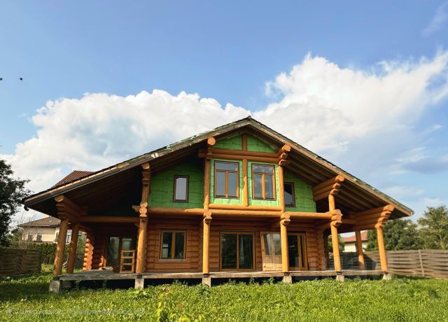 В доме: 5 спален (одна из них - на первом этаже), гостиная с камином, большая кухня-столовая с эркером, теплая веранда (зимний сад) с кухонной зоной и выходом на террасу, террасы на первом и втором этажах, мансардный этаж свободной планировки под чистовую отделку, постирочная, котельная и кладовые.