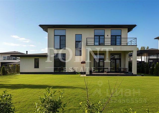 Участок 8 соток правильной формы. Сделан ландшафтный дизайн: уложен газон, посажены плодовые растения и деревья. Установлены автоматические ворота. Перед домом большая площадка для 5-6 автомобилей, вымощенная брусчаткой.