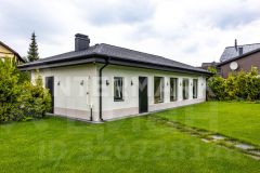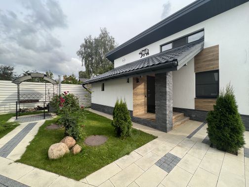 В доме выполнена отделка под ключ. Ремонт осуществлен в 2021 году. В отделке использованы массив дерева, керамическая плитка, обои. В цоколе дома есть печь, может быть использована как камин в зоне отдыха. В отделке пола преимущественно использована массивная доска, что создает в доме теплую атмосферу. Помимо основного дома на участке распложена зона-BBQ, гараж на 2 машино-места и комнатами для персонала, а также теплица.