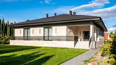 В архитектурном проекте данного дома продумано все до мельчайшей детали. Неповторимой красоты лестница соединяет спальни правого и левого крыла дома, а в центре образованы общие зоны: спа с бассейном, сауной и зимним садом, гостиная, кухня-столовая.