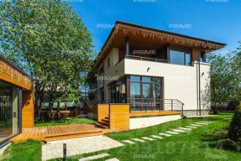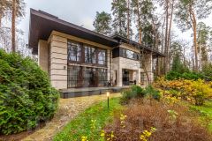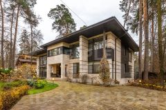 Современный дом без отделки 1050 кв.м. с плоской кровлей и большим панорамным остеклением, расположен в поселке Никольская слобода, самом близком из всех элитных поселков Новорижского шоссе.