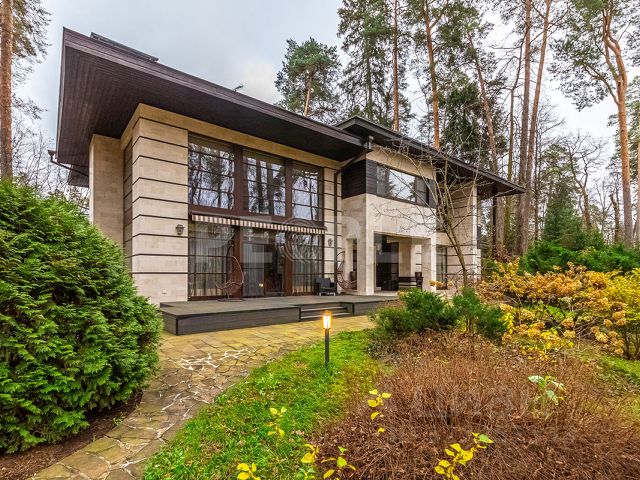 Дом построен на территории соснового бора на участке 30 соток и исключительно скрупулезно вписан в ландшафт: сохранено максимальное количество вековых деревьев, эко-система не нарушена.