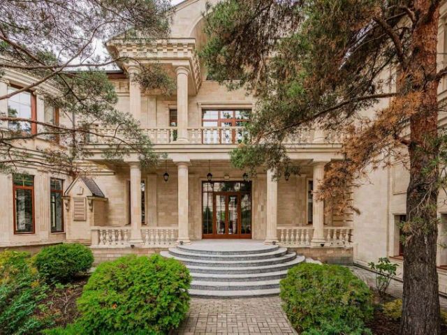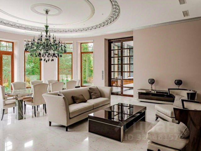 Усадебный комплекс состоит из 7-ми строений: главный дом (448 кв.м) соединен подземным переходом с бассейном (369 кв.м), гостевой дом (531 кв.м), банный комплекс (146 кв.м), дом персонала на 2 этаже и гараж (246 кв.м), будка охраны на въезде, конюшня (114 кв.м), хозяйственная постройка с гаражом (106 кв.м).