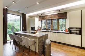 ID 585963 Продается дом 1000 кв.м. на участке 22 соток в КП Новахово. 9 км. от МКАД по Новорижскому шоссе. Планировка: 1 этаж: холл, гардеробная, гостевой с/у, гостиная с камином , столовая, кабинет, домашний кинотеатр, кухня с большим подсобным помещением, постирочная, с/у, котельная, гараж на 2 м/м; 2 этаж: семейная гостиная, главная спальня с 3 гардеробными комнатами и с/у, спальня с рабочей зоной, гардеробной, с/у, гостевая спальня , 2 спальни с большой гардеробной и большой ванной комнатой Мансарда: спальня с с/у и гардеробной, помещение свободного назначения. с/у. Техника на кухне бренда SMEG, стиральная машина Miele. Сантехника Devon&Devon, Villeroy&Boch, Hoesch. На участке: дом для проведения праздников с большим обеденным столом, барной стойкой, с/у и зоной для приготовления пищи (барбекю, мангал, раковина), дом для персонала, пост охраны, место для парковки 2х автомобилей, вольеры для собак. Коммуникации центральные. Участок ровный, с ландшафтными работами: газон, дорожки, освещение, декоративные насаждения. Номер объекта: #1/585963/14501