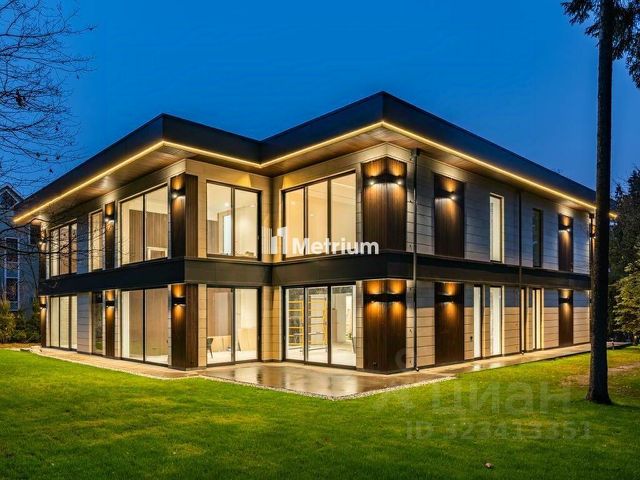 Элегантный особняк в современном стиле общей площадью 1517 кв.м на участке 44 сотки расположен в коттеджном поселке Никольская слобода, самом близком из всех элитных поселков Новорижского шоссе.