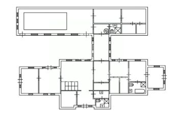 Общие помещения: холл (28), кабинет (27), кладовая (2) с доступом по лестнице в тех помещение на третьем этаже (56).
