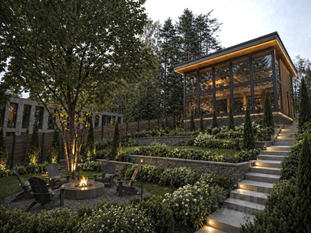 Первый этаж: прихожая с выходом в гараж, санузел, гардеробная, гостиная, кухня с кладовой, постирочная, техническое помещение, спа-зона с бассейном, дровяная парная, душевая и санузел
