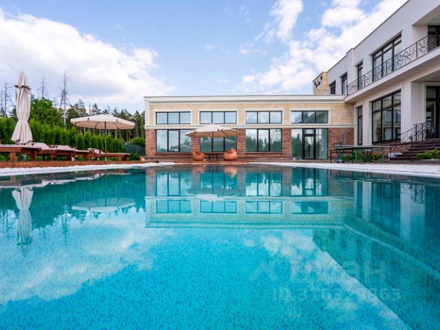ID 757 Дом построен в 2023, в очень живописном лесу на 30 сотках, на берегу Генеральского озера. 812 м² + 152,5 м² гараж на 2 машиноместа + блок для персонала второй свет бассейн в доме с зоной спа и с видом на лес кабинет со стеклянной стеной и видом на второй свет и на лес с балконом, мастер-спальня с витражами и видом на лес с огромной гардеробной м/ж (всего 6 спален) санузел с отдельно стоящей ванной 6 спален кинотеатр постирочная спортзал винная комната. Двухэтажный коттедж с дизайнерским ремонтом в лесу у озера Дом 1000 кв.м, с зоной для персонала и гаражом. Москва, 13 км. Новорижского шоссе, СНТ "Усадьба" Цоколь: Кладовая - 32,20 кв/м Тренажерный зал - 63,02 кв/м Винная комната - 10,80 кв/м Гардеробная - 14,06 кв/м С/у - 7,33 кв/м Постирочная - 26,63 кв/м Котельная - 11,64 кв/м Итого: 165,58 кв/м Первый этаж: Входная группа - 14,10 кв/м С/у - 4,29 кв/м Гостевая спальня - 21,80 кв/м Сауна - 9,61 кв/м Душевая - 1,33 кв/м С/у - 1,33 кв/м Зона спа - 77,29 кв/м Кухня-гостиная - 75,37 кв/м Прихожая зона - 5,74 кв/м Итого: 210,86 кв/м Второй этаж: Холл - 14,64 кв/м Кабинет - 14,91 кв/м С/у - 12,23 кв/м Гардеробная - 6,48 кв/м Детская - 21,80 кв/м Мастер-блок - 26,16 кв/м Мужская гардеробная - 9,82 кв/м Мастер с/у - 13,35 кв/м Женская гардеробная - 14,69 кв/м Мастер-спальня - 30,97 кв/м Итого: 165,05 кв/м Мансарда: Зона кинотеатра - 36,99 кв/м С/у - 8,14 кв/м Спальня 1 - 32,21 кв/м Спальня 2 - 22,60 кв/м Спальня 3 - 17,94 кв/м Итого: 117,88 кв/м