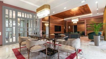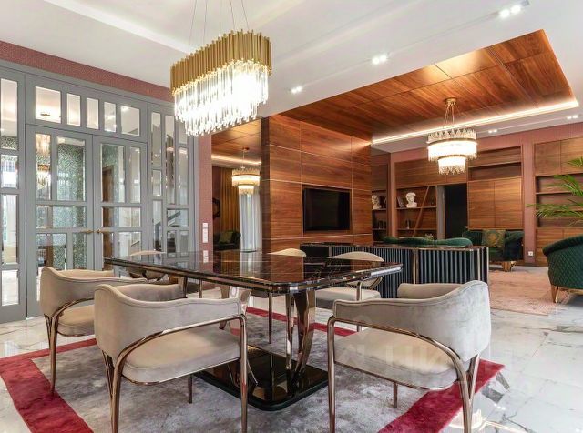 В кабинетах столы Rubelli (Италия), кресло Interstuhl (Германия), тумба JNL (Бельгия), диван Donghia (Италия), кресла Duvivier Hermes (Франция)