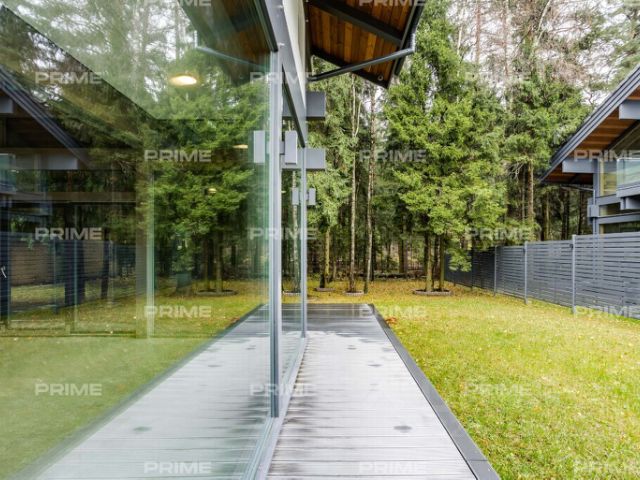 Панорамные окна из натурального дуба с двухкамерными мультифункциональными стеклопакетами открывают приятный вид на лес и обеспечивают естественное освещение. Окна гостиной и главной спальни выходят на восток.
