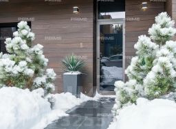 Придомовая территория поражает своей красотой и ухоженностью: среди вывмощенных дорожек возвышаются вечнозеленые ели и сосны, создавая атмосферу приватности в окружении живописного ландшафта. Фасад здания выполнен в классическом стиле с изящной лепниной, колоннами и балюстрадами, что подчеркивает высокий статус объекта.
