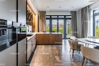 Встроенная техника (посудомоечная машина, кофемашина, духовка с функцией СВЧ), варочная индукционная плита на 6 конфорок: Miele.