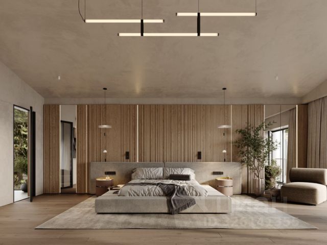 Мастер-блок (109): спальня (36) с собственным выходом на балкон, двумя ванными комнатами (17 и 11) и двумя гардеробными (46).