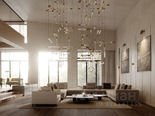 -стильная трехзонная гостиная (126 кв.м) с потолками 4,3 м,