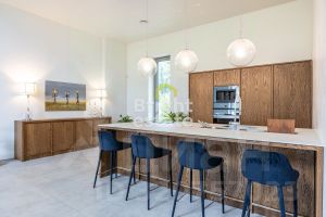 Фасад дома лаконичный и строгий, выполнен в светлой цветовой гамме. Торжественность резиденции добавляют два симметричных крыла, скрывающие просторный внутренний дворик от глаз соседей.
