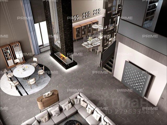 -стильная трехзонная гостиная (126 кв.м) с потолками 4,3 м,