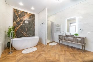 Мрамор: прихожая, напольная раковина в с/у, полоки в хаммаме, подиум в мастер-спальне.