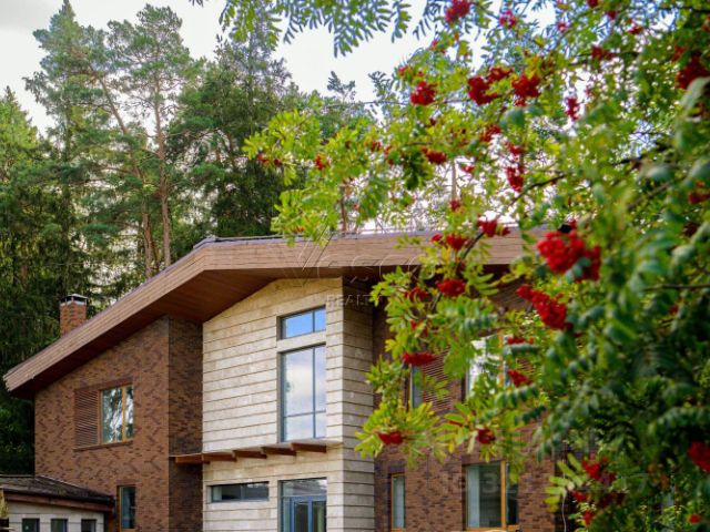 Особенности дома: интересная планировка, высокие потолки (3,3 м - на 1 этаже, 5,5 м - на втором), лесной участок - утопает в зелени, живописный вид из панорамных окон на вековые сосны, рябины, дубы.