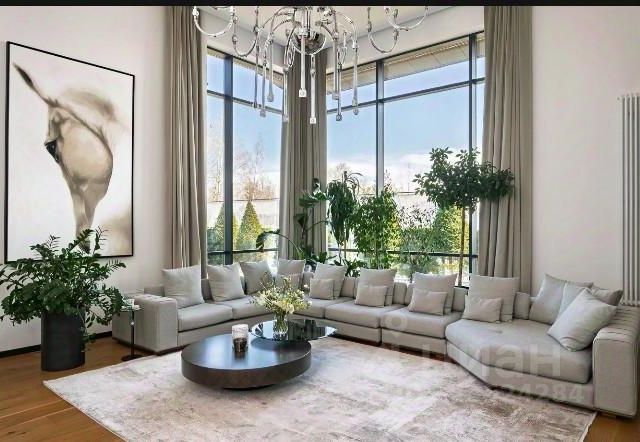 -стильная трехзонная гостиная (126 кв.м) с потолками 4,3 м,