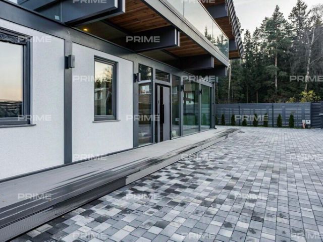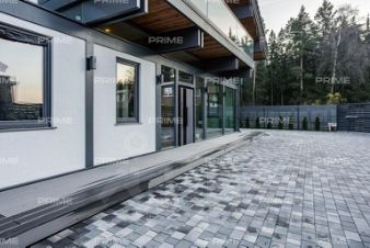 Придомовая территория поражает своей красотой и ухоженностью: среди вывмощенных дорожек возвышаются вечнозеленые ели и сосны, создавая атмосферу приватности в окружении живописного ландшафта. Фасад здания выполнен в классическом стиле с изящной лепниной, колоннами и балюстрадами, что подчеркивает высокий статус объекта.