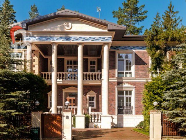 Построен дом из кирпича, фасад отделан немецким клинкерным кирпичом + шамот, медная фальцевая кровля. Отделка дома выполнена по индивидуальному дизайнерскому проекту. Большие понорамные окна, светлая отделка дополняют дом светом. Для внутренней отделки использовались дорогостоящие материалы: паркет (дуб), мрамор (Италия), двери (массив дерева). Лестница в доме сделана из мрамора с перилами ручной работы с элементами ковки. Итальянская кухня выполнена из массива, есть вся необходимая встроенная техника: Smeg, сантехника Vileroy&Bosh.