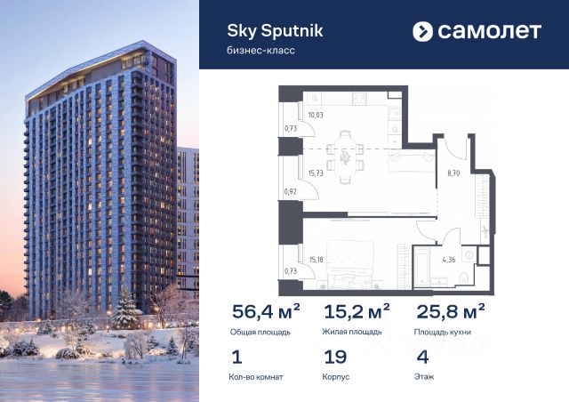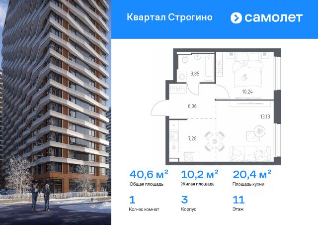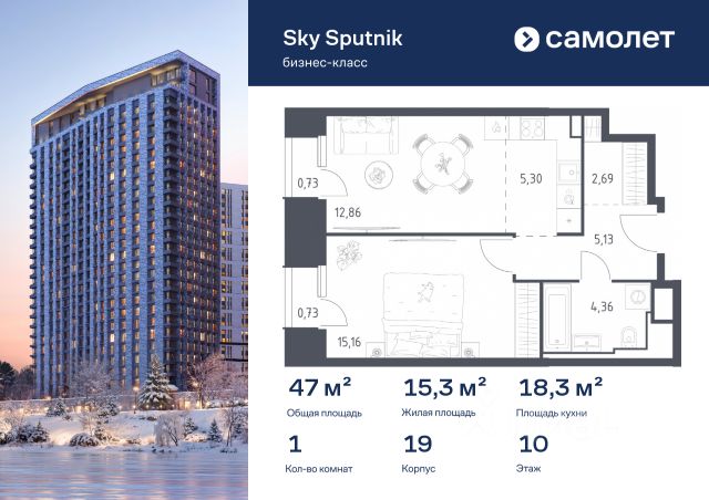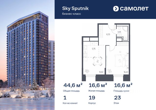 • Планировка — евроформат: комната 9,8 м², просторная кухня-гостиная 16 м²