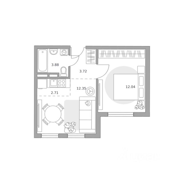 Продаётся 2-комнатная квартира 199, площадью 34,70 м², на 4 этаже в ЖК "Аникеевский" корпус 9. Стоимость — от 6807326 руб. Квартира без отделки, планировка односторонняя, окна на улицу.