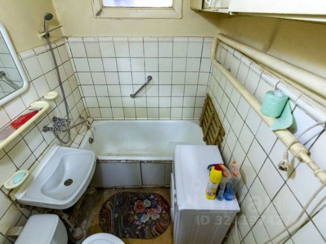 Совмещённый санузел 4,9 кв.м с душевой кабиной, нишей для стиральной машины.