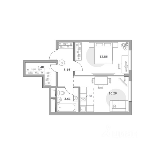 Продаётся студия 828, площадью 26,28 м², на 8 этаже в ЖК "Ильинойс" корпус 3. Стоимость — от 6784854 руб. Квартира без отделки, планировка односторонняя, окна во двор.