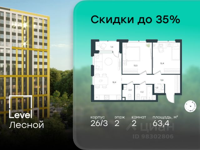 Цена указана с учётом скидки при 100%-й оплате, несубсидированной ипотеке, рассрочке (кроме программы "Рассрочка 0%"). В районе, утопающем в густой зелени лесов, многочисленных парков и скверов, продаётся 1-комнатная квартира площадью 43.00 кв.м без отделки. Квартира расположена на 13 этаже в жилом комплексе комфорт-класса Level Лесной (компания Level Group/Левел групп). Отличная транспортная доступность: - 25 мин. пешком до станции метро "Пятницкое шоссе"; - 28 мин. на автобусе до станции метро и МЦД-2 "Волоколамская"; - 11 мин. на авто до МКАД; - 25 мин. на авто до ТТК. Продуманный архитектурный проект: - Концепция проекта Level Лесной от бюро СПИЧ; - Высотность комплекса до 15 этажей с уникальными видами на лесные массивы и город; - Высота потолков до 3 м; - Современные окна высотой до 1,6 м, в части квартир предусмотрены окна в пол. Высота подоконников 0,6 м; Расположение: Level Лесной строится в зелёной зоне ближайшего Подмосковья, г.о. Красногорск в посёлке Отрадное. Шаговая и автомобильная доступность до метро и больших транспортных артерий города. За 25 минут вы дойдёте до станции метро "Пятницкое шоссе", а за 20 минут на машине сможете доехать до станции метро "Тушинская". Район окружен роскошной зеленью лесов и парковых зон, занимающих территорию свыше 1 000 гектаров. Помимо благоприятной экологии, здесь множество возможностей для активного отдыха и поддержания физической формы. Облагороженная территории с полностью развитой инфраструктурой. На территории проекта находится детский сад и школа "Светлые Горы", которая входит в список лучших частных школ от Forbes Education (по данным на 2023г.). Кроме того, в пешей доступности расположено ещё 8 детских садов, а также запланировано открытие современной муниципальной школы. В непосредственной близости находятся сетевые супермаркеты и локальные магазины, аптеки, клиники, почта, библиотека, салоны красоты, рестораны, спортивные и творческие секции, развивающие детские центры. В 12 минутах пешком расположен торговый парк "Отрада" с продуктовым и строительным гипермаркетами, магазинами, кинотеатром и развлечениями для детей. Внутренняя инфраструктура: Мы знаем, как важно, чтобы магазины и сервисы были всегда рядом. В сданных корпусах Level Лесной уже расположена полностью готовая развитая инфраструктура. На первых этажах корпуса 27 предусмотрено ещё 14 коммерческих помещений. Благоустройство: Продуманное пространство и аура приватного европейского городка рождают чувство лёгкости и расслабления у каждого, кто попадает на территорию проекта. Концепцию общественных площадок разработали в партнёрстве два архитектурных бюро: Highlight Architecture и SCAPE. В безопасных дворах без машин каждый обязательно найдёт себе место для вдохновения, отдыха и спорта.