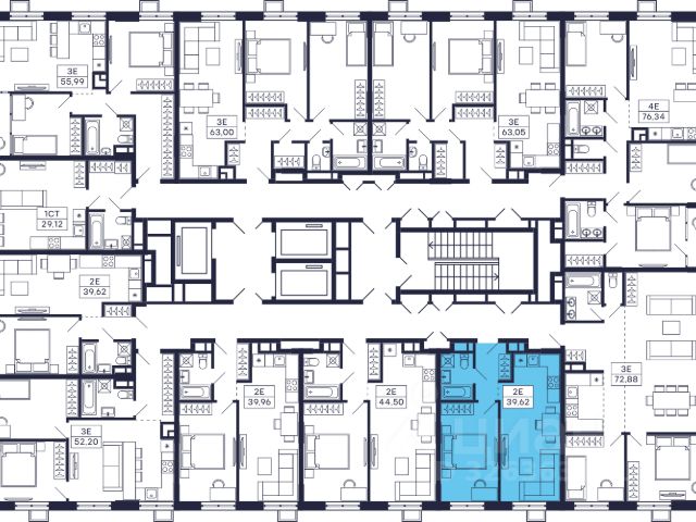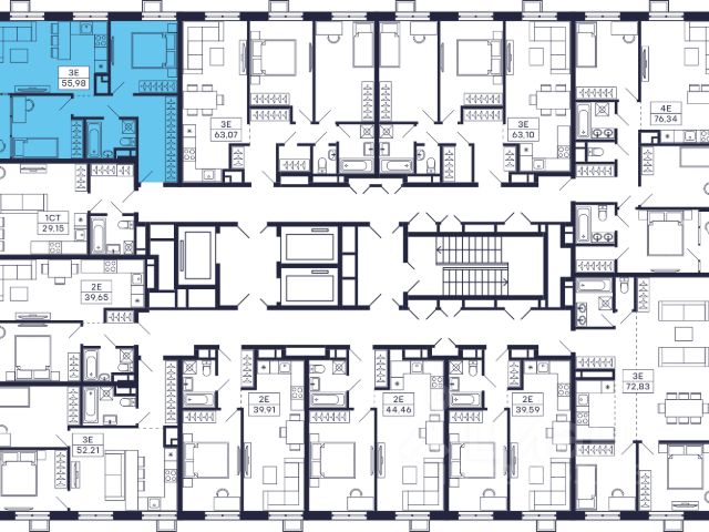 В комплексе предусмотрены различные планировочные решения: от студий до 3-комнатных квартир