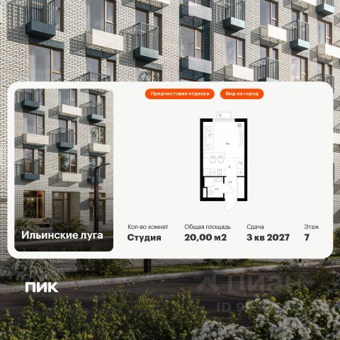 Продаётся квартира-студия площадью 29 кв.м на 3 этаже 9 этажного дома (Корпус 4.3, Секция 4) проекта ПИК Ильинские луга. Светлый просторный подъезд на уровне земли, функциональная планировка, большие окна, предчистовая отделка. Жилой район "Ильинские луга" находится в 10 километрах от МКАД по Новорижскому шоссе, в 20 минутах на автомобиле от станций метро "Волоколамская", "Тушинская" и "Строгино". В будущем ближе к проекту, в 9 минутах пути на машине, откроется станция "Ильинская" Рублёво-Архангельской линии, которая будет соединять Арбатско-Покровскую линию и Большую кольцевую линию. Сейчас в квартале начались продажи в корпусах 3.2, 3.3, 3.4, 3.5 и 3.6. "Ильинские луга" — масштабный проект, в который входит девять детских садов, четыре школы и поликлиника. Он строится в престижном и экологичном районе среди лесов и памятников природы. За 5 минут от жилого квартала можно доехать до Рублёво-Успенского шоссе, а за 30 минут — до центра Москвы. До крупного торгового центра "РИГАМОЛЛ" всего 5 минут на автомобиле, а до ТЦ "Твой дом" и гипермаркета "Глобус" — 10 минут. В "Ильинских лугах" строятся только девятиэтажные дома — такая архитектура соответствует спокойной жизни за городом. В каждом дворе-парке есть места для отдыха, детские и спортивные площадки. А ещё, здесь уже открыт большой PlayHub "Гравити" — современное игровое пространство с космической тематикой, холмами, зонами для игр и отдыха жителей любого возраста. На первых этажах уже работают магазины, кафе и пекарни. Места для отдыха от "Ильинских лугов" тоже недалеко: 10 минут на машине — и вы в музее-усадьбе "Архангельское". Также рядом находится Лохин остров — памятник природы, где водятся речные черепахи, есть места для кемпинга и возможность сплавиться по реке. Артикул 1012106 (Застройщик ООО "СЗ "ГРАДОЛИМП")