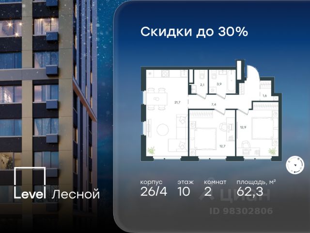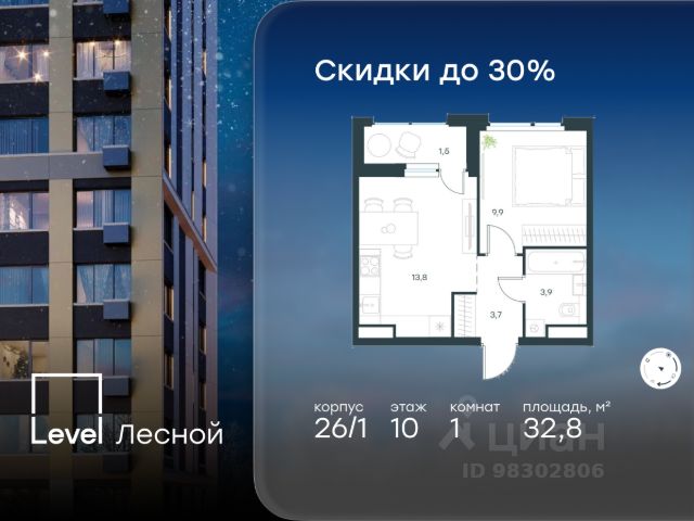 Цена указана с учётом скидки при 100%-й оплате, несубсидированной ипотеке, рассрочке (кроме программы "Рассрочка 0%"). В районе, утопающем в густой зелени лесов, многочисленных парков и скверов, продаётся 3-комнатная квартира площадью 74.40 кв.м с отделкой white box. Квартира расположена на 10 этаже в жилом комплексе комфорт-класса Level Лесной (компания Level Group/Левел групп). Отличная транспортная доступность: - 25 мин. пешком до станции метро "Пятницкое шоссе"; - 28 мин. на автобусе до станции метро и МЦД-2 "Волоколамская"; - 11 мин. на авто до МКАД; - 25 мин. на авто до ТТК. Продуманный архитектурный проект: - Концепция проекта Level Лесной от бюро СПИЧ; - Высотность комплекса до 15 этажей с уникальными видами на лесные массивы и город; - Высота потолков до 3 м; - Современные окна высотой до 1,6 м, в части квартир предусмотрены окна в пол. Высота подоконников 0,6 м; Расположение: Level Лесной строится в зелёной зоне ближайшего Подмосковья, г.о. Красногорск в посёлке Отрадное. Шаговая и автомобильная доступность до метро и больших транспортных артерий города. За 25 минут вы дойдёте до станции метро "Пятницкое шоссе", а за 20 минут на машине сможете доехать до станции метро "Тушинская". Район окружен роскошной зеленью лесов и парковых зон, занимающих территорию свыше 1 000 гектаров. Помимо благоприятной экологии, здесь множество возможностей для активного отдыха и поддержания физической формы. Облагороженная территории с полностью развитой инфраструктурой. На территории проекта находится детский сад и школа "Светлые Горы", которая входит в список лучших частных школ от Forbes Education (по данным на 2023г.). Кроме того, в пешей доступности расположено ещё 8 детских садов, а также запланировано открытие современной муниципальной школы. В непосредственной близости находятся сетевые супермаркеты и локальные магазины, аптеки, клиники, почта, библиотека, салоны красоты, рестораны, спортивные и творческие секции, развивающие детские центры. В 12 минутах пешком расположен торговый парк "Отрада" с продуктовым и строительным гипермаркетами, магазинами, кинотеатром и развлечениями для детей. Внутренняя инфраструктура: Мы знаем, как важно, чтобы магазины и сервисы были всегда рядом. В сданных корпусах Level Лесной уже расположена полностью готовая развитая инфраструктура. На первых этажах корпуса 27 предусмотрено ещё 14 коммерческих помещений. Благоустройство: Продуманное пространство и аура приватного европейского городка рождают чувство лёгкости и расслабления у каждого, кто попадает на территорию проекта. Концепцию общественных площадок разработали в партнёрстве два архитектурных бюро: Highlight Architecture и SCAPE. В безопасных дворах без машин каждый обязательно найдёт себе место для вдохновения, отдыха и спорта.
