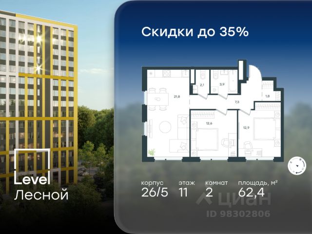 Цена указана с учётом скидки при 100%-й оплате, несубсидированной ипотеке, рассрочке (кроме программы "Рассрочка 0%"). В районе, утопающем в густой зелени лесов, многочисленных парков и скверов, продаётся 3-комнатная квартира площадью 78.20 кв.м без отделки. Квартира расположена на 11 этаже в жилом комплексе комфорт-класса Level Лесной (компания Level Group/Левел групп). Отличная транспортная доступность: - 25 мин. пешком до станции метро "Пятницкое шоссе"; - 28 мин. на автобусе до станции метро и МЦД-2 "Волоколамская"; - 11 мин. на авто до МКАД; - 25 мин. на авто до ТТК. Продуманный архитектурный проект: - Концепция проекта Level Лесной от бюро СПИЧ; - Высотность комплекса до 15 этажей с уникальными видами на лесные массивы и город; - Высота потолков до 3 м; - Современные окна высотой до 1,6 м, в части квартир предусмотрены окна в пол. Высота подоконников 0,6 м; Расположение: Level Лесной строится в зелёной зоне ближайшего Подмосковья, г.о. Красногорск в посёлке Отрадное. Шаговая и автомобильная доступность до метро и больших транспортных артерий города. За 25 минут вы дойдёте до станции метро "Пятницкое шоссе", а за 20 минут на машине сможете доехать до станции метро "Тушинская". Район окружен роскошной зеленью лесов и парковых зон, занимающих территорию свыше 1 000 гектаров. Помимо благоприятной экологии, здесь множество возможностей для активного отдыха и поддержания физической формы. Облагороженная территории с полностью развитой инфраструктурой. На территории проекта находится детский сад и школа "Светлые Горы", которая входит в список лучших частных школ от Forbes Education (по данным на 2023г.). Кроме того, в пешей доступности расположено ещё 8 детских садов, а также запланировано открытие современной муниципальной школы. В непосредственной близости находятся сетевые супермаркеты и локальные магазины, аптеки, клиники, почта, библиотека, салоны красоты, рестораны, спортивные и творческие секции, развивающие детские центры. В 12 минутах пешком расположен торговый парк "Отрада" с продуктовым и строительным гипермаркетами, магазинами, кинотеатром и развлечениями для детей. Внутренняя инфраструктура: Мы знаем, как важно, чтобы магазины и сервисы были всегда рядом. В сданных корпусах Level Лесной уже расположена полностью готовая развитая инфраструктура. На первых этажах корпуса 27 предусмотрено ещё 14 коммерческих помещений. Благоустройство: Продуманное пространство и аура приватного европейского городка рождают чувство лёгкости и расслабления у каждого, кто попадает на территорию проекта. Концепцию общественных площадок разработали в партнёрстве два архитектурных бюро: Highlight Architecture и SCAPE. В безопасных дворах без машин каждый обязательно найдёт себе место для вдохновения, отдыха и спорта.