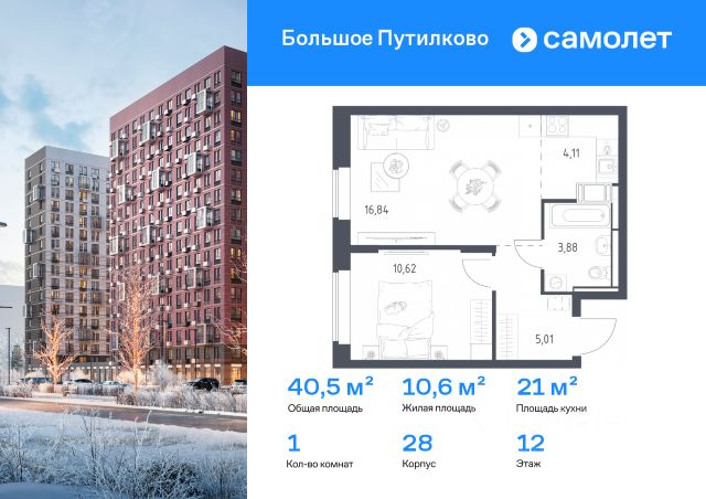 Строим кварталы для жизни с заботой о будущем. Предлагается 1-комнатная квартира комфорт-класса 37,44 кв.м в корпусе 28 на 12 этаже, в ЖК "Большое Путилково" Квартира без отделки. Доступность опции "отделка" и возможность комплектации мебелью и декором уточняйте у застройщика. Приобрести квартиру возможно по специальным акциям от застройщика, с текущими условиями акций можно ознакомиться в блоке "Акций". Цена динамическая и может отличаться, уточняйте актуальность у застройщика. "Большое Путилково" — масштабный жилой комплекс рядом с Алешкинским и Новогорским лесопарками. Мы уже построили и открыли 3 детских сада и школу, на первых этажах корпусов работают магазины, аптеки, кафе и пекарни. Удобное расположение проекта позволяет всего за 10 минут добраться до 4 станций метро. Во дворах обустроены детские площадки и зоны для отдыха. Все квартиры сдаются с готовой отделкой - переезжайте сразу после получения ключей!