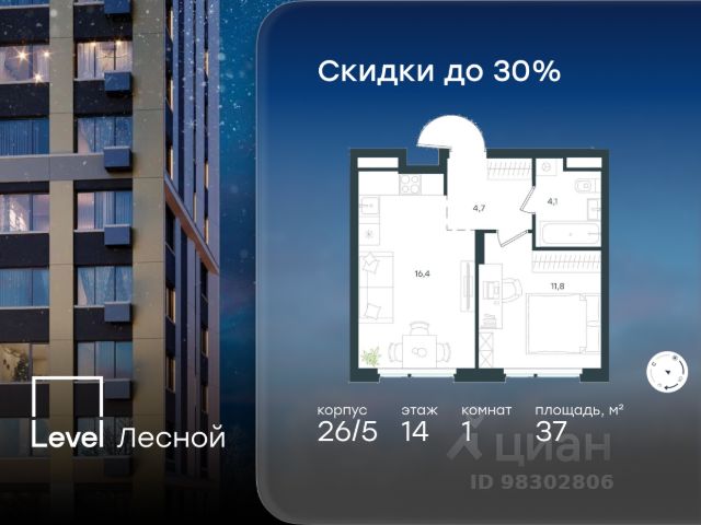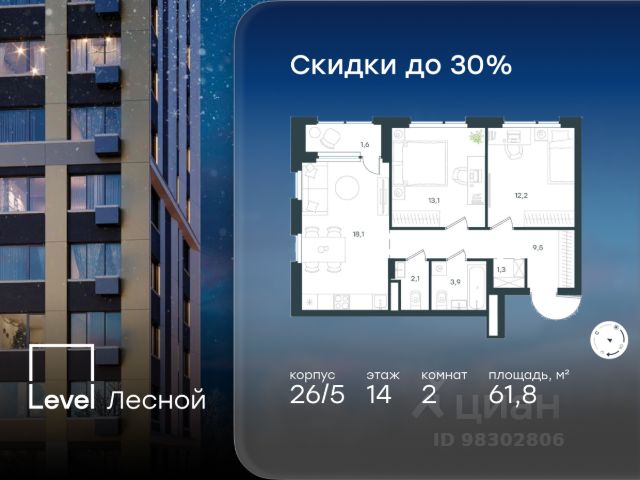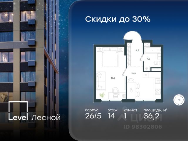 Цена указана с учётом скидки при 100%-й оплате, несубсидированной ипотеке, рассрочке (кроме программы "Рассрочка 0%"). В районе, утопающем в густой зелени лесов, многочисленных парков и скверов, продаётся 2-комнатная квартира площадью 62.50 кв.м с отделкой white box. Квартира расположена на 14 этаже в жилом комплексе комфорт-класса Level Лесной (компания Level Group/Левел групп). Отличная транспортная доступность: - 25 мин. пешком до станции метро "Пятницкое шоссе"; - 28 мин. на автобусе до станции метро и МЦД-2 "Волоколамская"; - 11 мин. на авто до МКАД; - 25 мин. на авто до ТТК. Продуманный архитектурный проект: - Концепция проекта Level Лесной от бюро СПИЧ; - Высотность комплекса до 15 этажей с уникальными видами на лесные массивы и город; - Высота потолков до 3 м; - Современные окна высотой до 1,6 м, в части квартир предусмотрены окна в пол. Высота подоконников 0,6 м; Расположение: Level Лесной строится в зелёной зоне ближайшего Подмосковья, г.о. Красногорск в посёлке Отрадное. Шаговая и автомобильная доступность до метро и больших транспортных артерий города. За 25 минут вы дойдёте до станции метро "Пятницкое шоссе", а за 20 минут на машине сможете доехать до станции метро "Тушинская". Район окружен роскошной зеленью лесов и парковых зон, занимающих территорию свыше 1 000 гектаров. Помимо благоприятной экологии, здесь множество возможностей для активного отдыха и поддержания физической формы. Облагороженная территории с полностью развитой инфраструктурой. На территории проекта находится детский сад и школа "Светлые Горы", которая входит в список лучших частных школ от Forbes Education (по данным на 2023г.). Кроме того, в пешей доступности расположено ещё 8 детских садов, а также запланировано открытие современной муниципальной школы. В непосредственной близости находятся сетевые супермаркеты и локальные магазины, аптеки, клиники, почта, библиотека, салоны красоты, рестораны, спортивные и творческие секции, развивающие детские центры. В 12 минутах пешком расположен торговый парк "Отрада" с продуктовым и строительным гипермаркетами, магазинами, кинотеатром и развлечениями для детей. Внутренняя инфраструктура: Мы знаем, как важно, чтобы магазины и сервисы были всегда рядом. В сданных корпусах Level Лесной уже расположена полностью готовая развитая инфраструктура. На первых этажах корпуса 27 предусмотрено ещё 14 коммерческих помещений. Благоустройство: Продуманное пространство и аура приватного европейского городка рождают чувство лёгкости и расслабления у каждого, кто попадает на территорию проекта. Концепцию общественных площадок разработали в партнёрстве два архитектурных бюро: Highlight Architecture и SCAPE. В безопасных дворах без машин каждый обязательно найдёт себе место для вдохновения, отдыха и спорта.