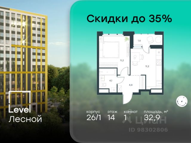 Цена указана с учётом скидки при 100%-й оплате, несубсидированной ипотеке, рассрочке (кроме программы "Рассрочка 0%"). В районе, утопающем в густой зелени лесов, многочисленных парков и скверов, продаётся 2-комнатная квартира площадью 69.70 кв.м с отделкой white box. Квартира расположена на 14 этаже в жилом комплексе комфорт-класса Level Лесной (компания Level Group/Левел групп). Отличная транспортная доступность: - 25 мин. пешком до станции метро "Пятницкое шоссе"; - 28 мин. на автобусе до станции метро и МЦД-2 "Волоколамская"; - 11 мин. на авто до МКАД; - 25 мин. на авто до ТТК. Продуманный архитектурный проект: - Концепция проекта Level Лесной от бюро СПИЧ; - Высотность комплекса до 15 этажей с уникальными видами на лесные массивы и город; - Высота потолков до 3 м; - Современные окна высотой до 1,6 м, в части квартир предусмотрены окна в пол. Высота подоконников 0,6 м; Расположение: Level Лесной строится в зелёной зоне ближайшего Подмосковья, г.о. Красногорск в посёлке Отрадное. Шаговая и автомобильная доступность до метро и больших транспортных артерий города. За 25 минут вы дойдёте до станции метро "Пятницкое шоссе", а за 20 минут на машине сможете доехать до станции метро "Тушинская". Район окружен роскошной зеленью лесов и парковых зон, занимающих территорию свыше 1 000 гектаров. Помимо благоприятной экологии, здесь множество возможностей для активного отдыха и поддержания физической формы. Облагороженная территории с полностью развитой инфраструктурой. На территории проекта находится детский сад и школа "Светлые Горы", которая входит в список лучших частных школ от Forbes Education (по данным на 2023г.). Кроме того, в пешей доступности расположено ещё 8 детских садов, а также запланировано открытие современной муниципальной школы. В непосредственной близости находятся сетевые супермаркеты и локальные магазины, аптеки, клиники, почта, библиотека, салоны красоты, рестораны, спортивные и творческие секции, развивающие детские центры. В 12 минутах пешком расположен торговый парк "Отрада" с продуктовым и строительным гипермаркетами, магазинами, кинотеатром и развлечениями для детей. Внутренняя инфраструктура: Мы знаем, как важно, чтобы магазины и сервисы были всегда рядом. В сданных корпусах Level Лесной уже расположена полностью готовая развитая инфраструктура. На первых этажах корпуса 27 предусмотрено ещё 14 коммерческих помещений. Благоустройство: Продуманное пространство и аура приватного европейского городка рождают чувство лёгкости и расслабления у каждого, кто попадает на территорию проекта. Концепцию общественных площадок разработали в партнёрстве два архитектурных бюро: Highlight Architecture и SCAPE. В безопасных дворах без машин каждый обязательно найдёт себе место для вдохновения, отдыха и спорта.