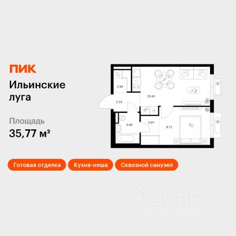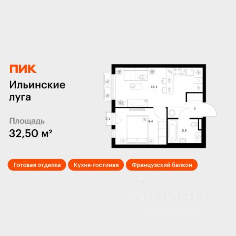 Продаётся 1-комн. квартира площадью 33,5 кв.м на 4 этаже 9 этажного дома (Корпус 4.3, Секция 5) проекта ПИК Ильинские луга. Светлый просторный подъезд на уровне земли, функциональная планировка, большие окна, предчистовая отделка. Жилой район "Ильинские луга" находится в 10 километрах от МКАД по Новорижскому шоссе, в 20 минутах на автомобиле от станций метро "Волоколамская", "Тушинская" и "Строгино". В будущем ближе к проекту, в 9 минутах пути на машине, откроется станция "Ильинская" Рублёво-Архангельской линии, которая будет соединять Арбатско-Покровскую линию и Большую кольцевую линию. Сейчас в квартале начались продажи в корпусах 3.2, 3.3, 3.4, 3.5 и 3.6. "Ильинские луга" — масштабный проект, в который входит девять детских садов, четыре школы и поликлиника. Он строится в престижном и экологичном районе среди лесов и памятников природы. За 5 минут от жилого квартала можно доехать до Рублёво-Успенского шоссе, а за 30 минут — до центра Москвы. До крупного торгового центра "РИГАМОЛЛ" всего 5 минут на автомобиле, а до ТЦ "Твой дом" и гипермаркета "Глобус" — 10 минут. В "Ильинских лугах" строятся только девятиэтажные дома — такая архитектура соответствует спокойной жизни за городом. В каждом дворе-парке есть места для отдыха, детские и спортивные площадки. А ещё, здесь уже открыт большой PlayHub "Гравити" — современное игровое пространство с космической тематикой, холмами, зонами для игр и отдыха жителей любого возраста. На первых этажах уже работают магазины, кафе и пекарни. Места для отдыха от "Ильинских лугов" тоже недалеко: 10 минут на машине — и вы в музее-усадьбе "Архангельское". Также рядом находится Лохин остров — памятник природы, где водятся речные черепахи, есть места для кемпинга и возможность сплавиться по реке. Артикул 1012238 (Застройщик ООО "СЗ "ГРАДОЛИМП")