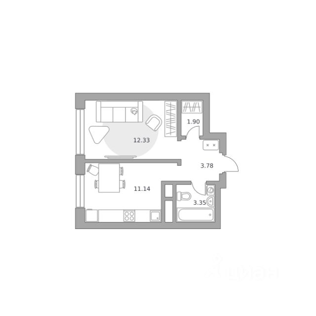 Продаётся 1-комнатная квартира 1900, площадью 32,50 м², на 6 этаже в ЖК "Ильинойс" корпус 3. Стоимость — от 8745313 руб. Квартира без отделки, планировка односторонняя, окна на улицу.