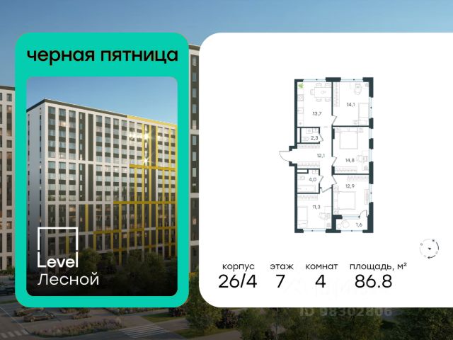 Цена указана с учётом скидки при 100%-й оплате, несубсидированной ипотеке, рассрочке (кроме программы "Рассрочка 0%"). Субсидированная семейная ипотека. Полная стоимость кредита 20,963 - 23,237% годовых. Ставка 3,9% годовых. Первоначальный взнос от 20,01%. Сумма кредита до 12 млн. руб. В районе, утопающем в густой зелени лесов, многочисленных парков и скверов, продаётся 1-комнатная квартира площадью 38.00 кв.м без отделки. Квартира расположена на 7 этаже в жилом комплексе комфорт-класса Level Лесной (компания Level Group/Левел групп). Отличная транспортная доступность: - 25 мин. пешком до станции метро "Пятницкое шоссе"; - 28 мин. на автобусе до станции метро и МЦД-2 "Волоколамская"; - 11 мин. на авто до МКАД; - 25 мин. на авто до ТТК. Продуманный архитектурный проект: - Концепция проекта Level Лесной от бюро СПИЧ; - Высотность комплекса до 15 этажей с уникальными видами на лесные массивы и город; - Высота потолков до 3 м; - Современные окна высотой до 1,6 м, в части квартир предусмотрены окна в пол. Высота подоконников 0,6 м; Расположение: Level Лесной строится в зелёной зоне ближайшего Подмосковья, г.о. Красногорск в посёлке Отрадное. Шаговая и автомобильная доступность до метро и больших транспортных артерий города. За 25 минут вы дойдёте до станции метро "Пятницкое шоссе", а за 20 минут на машине сможете доехать до станции метро "Тушинская". Район окружен роскошной зеленью лесов и парковых зон, занимающих территорию свыше 1 000 гектаров. Помимо благоприятной экологии, здесь множество возможностей для активного отдыха и поддержания физической формы. Облагороженная территории с полностью развитой инфраструктурой. На территории проекта находится детский сад и школа "Светлые Горы", которая входит в список лучших частных школ от Forbes Education (по данным на 2023г.). Кроме того, в пешей доступности расположено ещё 8 детских садов, а также запланировано открытие современной муниципальной школы. В непосредственной близости находятся сетевые супермаркеты и локальные магазины, аптеки, клиники, почта, библиотека, салоны красоты, рестораны, спортивные и творческие секции, развивающие детские центры. В 12 минутах пешком расположен торговый парк "Отрада" с продуктовым и строительным гипермаркетами, магазинами, кинотеатром и развлечениями для детей. Внутренняя инфраструктура: Мы знаем, как важно, чтобы магазины и сервисы были всегда рядом. В сданных корпусах Level Лесной уже расположена полностью готовая развитая инфраструктура. На первых этажах корпуса 27 предусмотрено ещё 14 коммерческих помещений. Благоустройство: Продуманное пространство и аура приватного европейского городка рождают чувство лёгкости и расслабления у каждого, кто попадает на территорию проекта. Концепцию общественных площадок разработали в партнёрстве два архитектурных бюро: Highlight Architecture и SCAPE. В безопасных дворах без машин каждый обязательно найдёт себе место для вдохновения, отдыха и спорта.